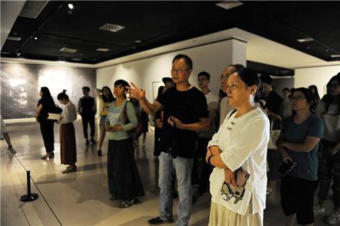 9月5日,常熟理工学院艺术系的师生和部分中小学美术老师齐聚常熟美术馆,张文来老师在展厅为大家导赏作品并讲述画面背后的故事。