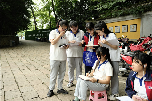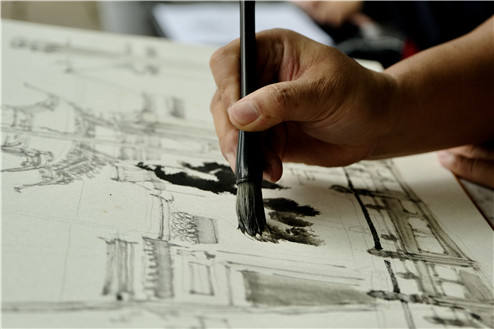 学生们在兴福寺进行选景,并将心仪的景色用手机拍摄记录,在谢老师写生示范之后,分散在各处开始写生。学生们仔细观察、认真欣赏,通过速写的形式表现兴福寺的独特景色。