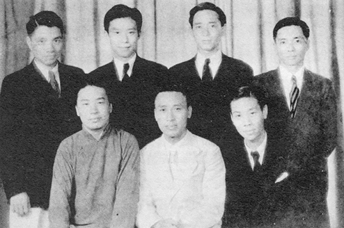 1933年,决澜社部分成员合影。前排左起:庞薰琹、张弦、阳太阳。后排左起:周多、杨秋人、段平右、倪贻德。