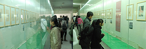 扬州职业大学校园环境优美,景色宜人,占地1100亩,分教学区和生活区两大块,中间有省道扬治线隔开,靠一条宽10米的地下通道连接,通道两侧为展览橱窗,展览条件优越。学校学科门类齐全,设有91个专业和专业方向,全日制在校生近20,000人,成人业余和开放教育在校生7000余人,教职工1100多人。在这条通道内,每天有10万人次经过,这正是我们选择通道做本次展览的重要原因。如按此计算,将有300万人次自觉不自觉地参观了本次展览,社会效益极大。