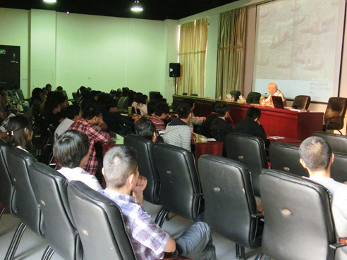 举行“王石谷与虞山画派”系列讲座第四讲 2012-09-19 07:33:00来源:常熟美术馆点击:3256 9月19日上午,“ 王石谷与虞山画派” 系列讲座第四讲在常熟美术馆报告厅举行。第四讲内容为“ 笔惊天子” ,赵平教授声情并茂的讲述,再现了王石谷赴京创作《康熙南巡图》的一段历史故事。来自常熟高新园中等专业学校平面设计专业的师生和本市的美术爱好者聆听了讲座。