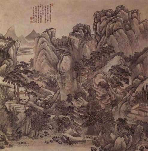 成熟的第一个标志是在以集古人大成的形式自抒机抒上更加自觉。他明确地认识到去粗取精的集大成,当「以元人笔墨运宋人丘望而泽以唐人气韵」为依归。基于这种高屋建瓴、取精用宏的追求,他已把看来格格不入的法派在不同程度上变化合一。对此,恽寿平称赞说:“ 自五代、南北宋、以至元明诸家笔法,从古自相枘凿无能会合者,至石谷乃悉罗而致之毫端,如握大将兵符,驱使材官羽骑佽飞之士奔走恐后。”