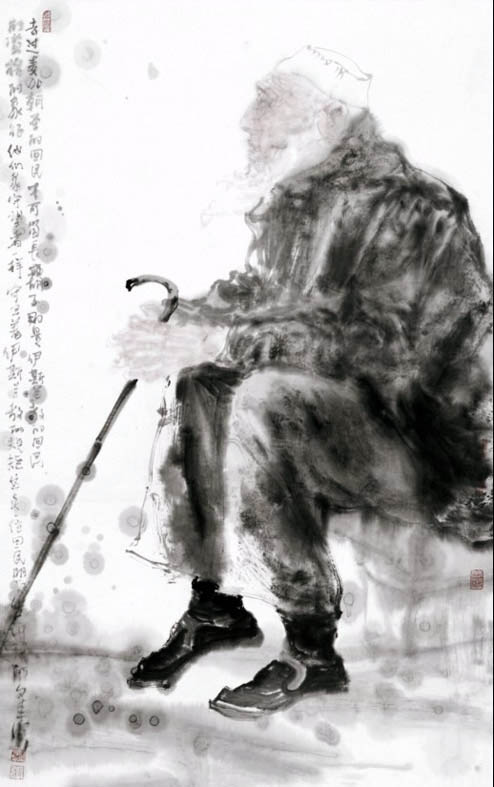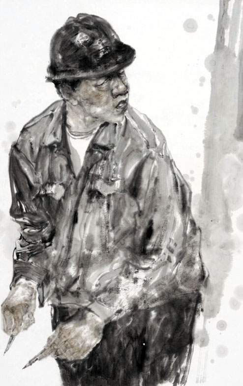 张文来不仅在学术和技术的层面上勤于思考、勇于实验,同时在题材的选择方面也具有自身淡泊的人文立场。即无论是历史题材的创作还是当代人物画的写生和塑造,都是站在以世俗的“ 小人物” 的角度加以表述。他用水墨的艺术语言真实而典型地表现出现实生活中“ 小人物” 的生存状况和生存态度,真诚地表现了艺术主观世界的审美情感和审美理解,凸显出他笔下“ 小人物” 强大的生命力。