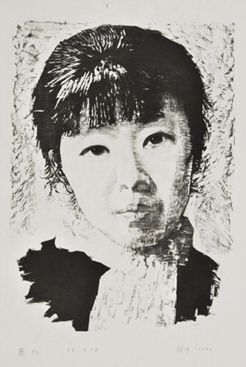 萧红 颜仲 37×28cm 黑白木刻 1991年