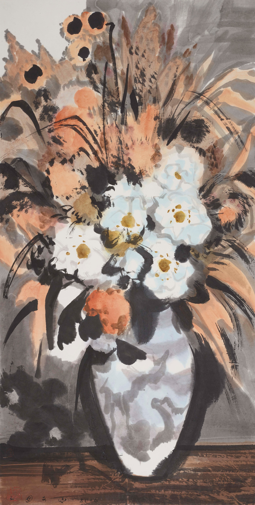 《野花与杂草》 刘巨德 水墨纸本设色 139×69cm 2010年