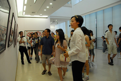 作为美术馆的一名专职讲解人员,7月7日上午,我有幸为常熟理工学院虞山分院文秘专业的学生上了一堂艺术欣赏课,讲解时按照美术馆展厅的布置分为几个板块,采用对话的形式直接与学生进行交流和沟通,还结合绘画和书法的相关知识与同学们一起来解读作品。同学们都反映这种交流方式很新颖,通过这次教学互动活动,使他们对原本难于理解的艺术作品有了一个新的认识,激发了大家对当代艺术家作品的新思考。