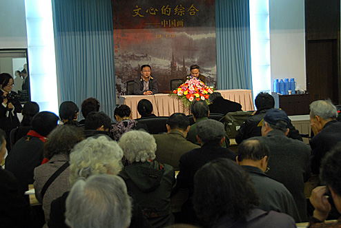 很多人对于中国画有这样的观点:中国画太单调,中国画本身对人的刺激强度不够,中国画的外在内容太多,有段时间我也是这个看法。1995年从法国回来后,我感觉中国画强力不够,放在一个环境里面,感到它很弱。在大英博物馆看顾恺之的《女史箴图》,线很细,没有震撼力。但是过了一段时间,我的想法发生了变化,其实看画需要一个氛围。在一个空间里可能会感到某些画较弱,但古人的画很多是藏在袖子里拿出来共同欣赏的,距离都在一米左右,在这个空间里欣赏是最适合的,如果它放到一个庙堂里面自然就显得弱了。有的画内容是人物和山水,高四米,气势就很强,所以看画需要制造一个氛围,就像喝茶一样,喝大碗茶,那是解渴,喝完就完了,但你要品茶的时候,最好在一个很小的空间里面,细细地一点一点地品,功夫茶是要一点一点地品味,和解渴没有关系,它偏重于审美。我想为什么要像喝大碗茶那样去看中国画?为什么要放在一个不应该放的环境里面?能不能制造一个氛围,品读中国画的氛围?我提出我的看法,我觉得绘画更是一个文化形态,强调刺激感、现实性、时间性是远远不够的。因为画画不像时装那样,过了这个季就没用了,变成垃圾给扔掉,绘画应该研究最内在的核心,能够永恒的核心。我有一个体会,中国画最强调文化形态,在世界上也是唯一以文化综合为标准的绘画。欧洲的绘画不强调文化形态,中国画有“ 诗、文、书、印” 好多内容,有人说那些没用,是外在的,但是我认为如果运用得很好,会变成非常好的内容。比如像郑板桥、潘天寿,他们在文字和绘画的结合关系上运用的非常好,体现出人的品格。中国人的文化品格决定,画的价值与画得“ 像不像” 没有关系,这就是文化心理。有意思的是,中国绘画在五代以前基本没有分行的,没有文人和工匠的区别,是以人物画为主的时代。西洋画派没有专门的划分,在18世纪末才出现了风景画或印象派等等。中国人有一种文化心态,因为中国强调文化,文人是主体,当官的都是文人,不像西方的画家是雇佣的工匠,绘画内容是宗教性的,为宣传宗教服务,用宗教来维持现在和警示未来的意思。但是中国画恰恰相反,尤其是中国山水画是远离这一切的,甚至是鄙视现实的心态。严格说起来应该在二到三世纪左右形成,建安时期国家很乱,出现了曹操这样的人物,人们生活很悲苦,思考人生去向问题,所以当时人的心态包括那时的艺术形式是对人生的感叹。曹操就是最典型的例子,他的《长叹歌》里都是哀歌,歌颂死亡,中国人偏向这种歌曲。后来唐太宗的长孙皇后,她的哥哥长孙无忌就是以唱悲歌而闻名,他唱的是送葬歌。那时候的人对人生产生了很多感叹,由此出现两种形态:一种是特别入世的,像曹操这种人,罢黜百家,自己来做一些对人民有用的事情;另一种是闭世的状态,就是一百多年后东晋时候最盛行的,他们感觉到自己无力便躲开这些矛盾。当道教和佛教进入中国以后,人们就找到一种媒介躲开社会矛盾。但是躲开社会矛盾得有条件,就像鲁迅讲的,陶渊明也是要吃饭。因为躲开社会,人物画被慢慢淡化,中国山水画出现了。当时出现很多歌颂自然的诗,不是针对人,是针对自然。这种形式由于文人的推动慢慢变成为主流,在五到六世纪,中国出现了一个非常有名的文人,叫刘勰,他写过一本书《文心雕龙》,强调文章的写法、文字的形式、文字的分类、修辞的方式,最强调的是思路问题,就是作文中要有一个思想内容。不到几十年,就出现了谢赫的《六法论》,当时还没有山水画,《六法论》主要是针对人物画的。中国文化品位就像道教一样,像老子的观点,有一个很大的涵度,慢慢就演化为中国画的品类,成为所有形式的一个标准,就是现在讲的“ 六法” ,用气韵生动来表现山水,实际上当时最早是评判人物画的。从那时起,中国的文人就慢慢登上了中国绘画的舞台,慢慢地由山水文化走向山水艺术。但真正提倡文人思想的人,实际是四世纪的苏东坡,一千年以前他主动提出了文人画的要求:“ 我看画就像看天下的马一样,我看过了一千匹马就明白了马的好坏,然后我翻阅工匠的画,我一看就倦,但是我看文人画的时候,我就来精神了。” 他看到有思想的画的时候就来精神了,说明一个问题:绘画要有思想。以前的工匠大部分是被雇佣的,是按照客户要求来画的,没有权利和思想。文人不靠绘画吃饭,不在乎这个,就产生了自由的想法。同时又有个问题,就是技术的问题,比如郭熙,他是北宋的宫廷画家,没有多少文化,但他的绘画本事却很大,画得非常好,在临死以前由他儿子整理完成了《林泉高致集》。苏东坡多次在诗文里谈到郭熙,说他画得如何好,如何有文气,这好像和他的原意相矛盾,实际上并不矛盾。苏东坡是重视技术和思想的,首先重视思想,然后重视技术。山水画成为中国绘画主流是到南宋时期,他代表中国的一种思想,中国人慢慢离开了现实,走向了自然。画山水画的人基本都是文人,工匠很少,中国艺术还有个特征就是民族和民间的问题,这是一个矛盾。民间是民族的一部分,但是中国画的主流尤其在近700年,山水占主体,通过很微弱的信息,表达文人对自然的留恋,对现实的逃避,元代最明显。当然有很多画家兼有两方面,比如元代初期赵孟頫,应该说他是最保守的,也是最先进的,既有宫廷画家的功力,又有文人的情思。画画的时候和写书法相